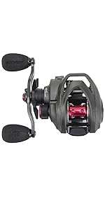 The ultra-light, one-piece, carbon-fiber handle provides extreme strength under even the heaviest cranking conditions. Its sleek, swept design puts the handle knobs closer to the reel's center line, resulting in less side torque under load.